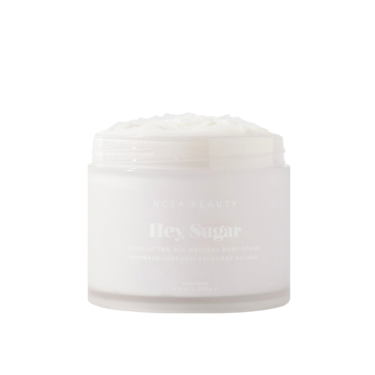 These ingredients may be sweet, but they are mighty tough on dry skin. Hey, Sugaris an all natural, deeply moisturizing and gently exfoliating coconut body scrub that will leave skin glowing and thirsty for more. Formulated with superfood ingredients like sugar, shea butter, mango butter, and cocoa butter, Hey Sugar Body Scrub leaves your skin hydrated and glowing from within.